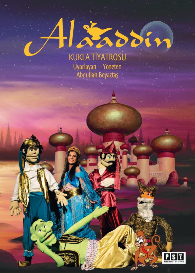Perde Sanat Tiyatrosu tarafından Kukla Sanatçısı Abdullah Beyaztaş ile birlikte gerçekleştirilen oldukça keyifli ve farklı bir anlatıcı sonucu ortaya çıkan Alaaddin oyunu, siz değerli tiyatro severleri büyülü sahne atmosferiyle karşılıyor. Oyun kendi tarzıyla, devasa kuklalarıyla fark yaratıyor.